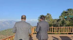 फोटो – मुख्य सचिव को यहां बिखरे प्राकृतिक वैभव को दिखाते जिलाधिकारी और हिमालय के विहंगम दृश्य को देखने में खो गए सीएस एवं डीएम ।