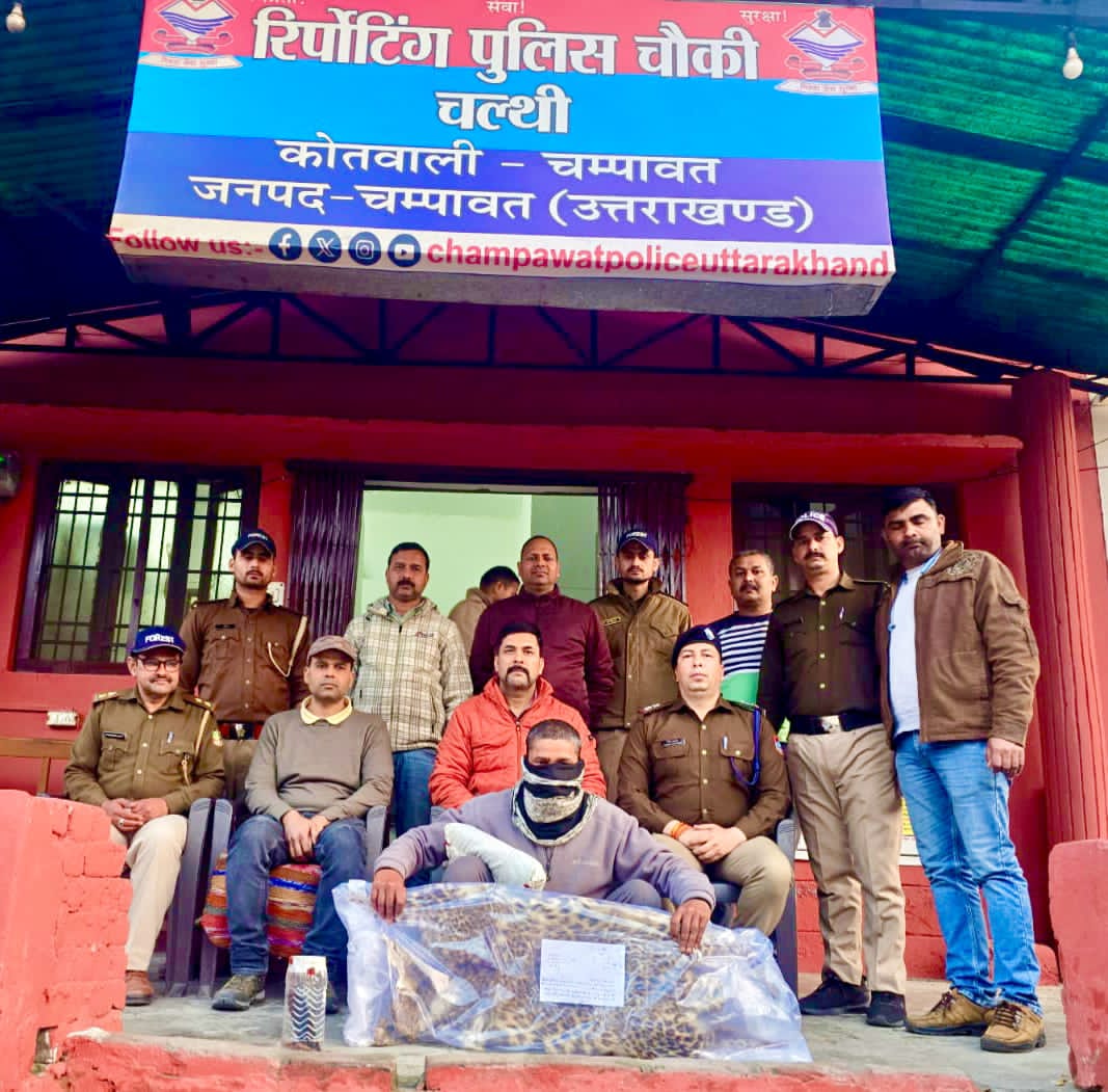 चम्पावत। पुलिस ने वन्य जीव तस्करों के खिलाफ सख्त रुख अपनाते हुए बड़ी सफलता हासिल की है। चल्थी क्षेत्र में एसओजी और वन विभाग की संयुक्त टीम ने एक तस्कर को गुलदार (तेंदुए) की खाल के साथ गिरफ्तार किया है।