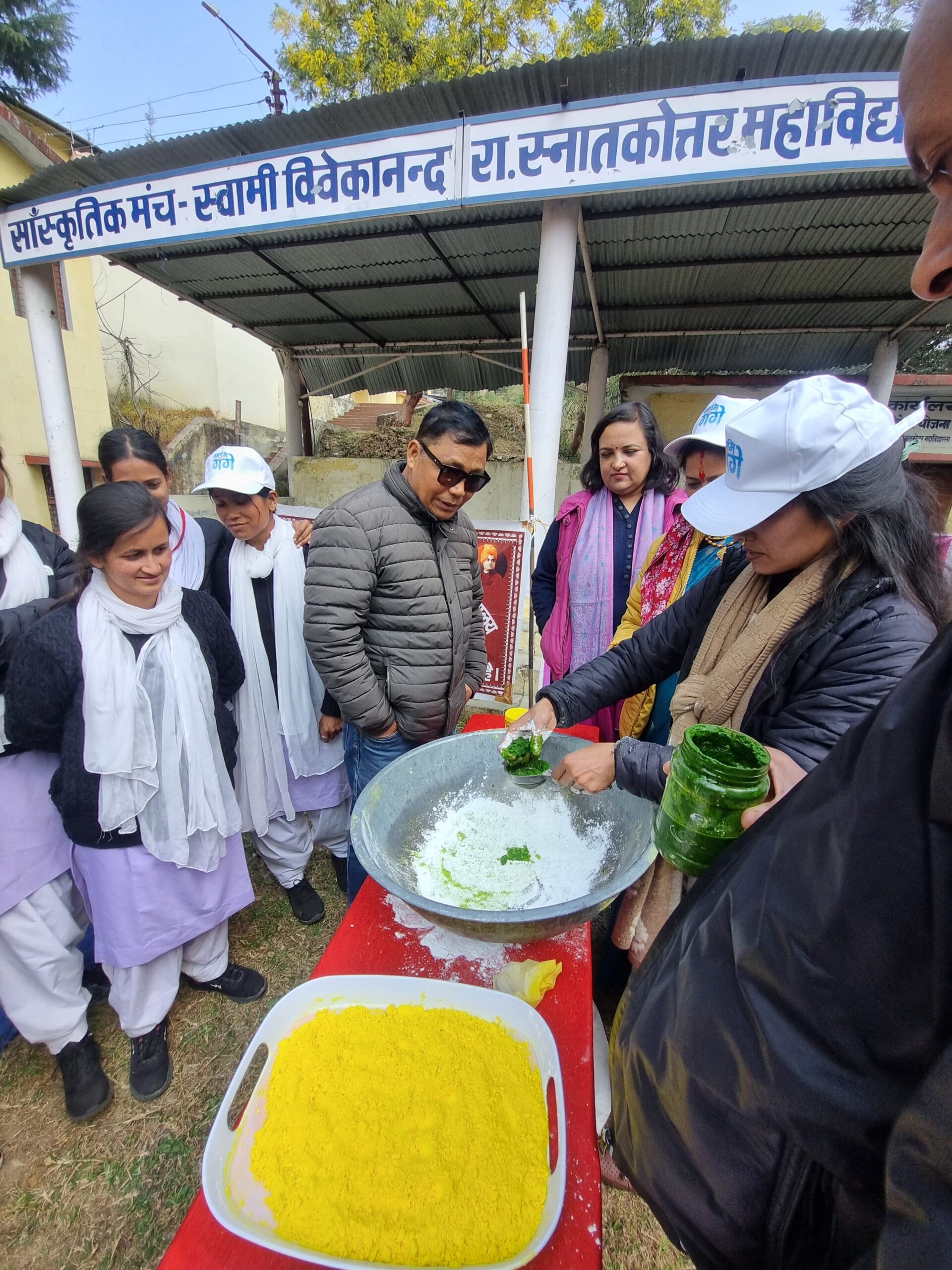 वैली क्रिएशन की संरक्षिका श्रीमती नेहा मुरारी एवं उनकी प्रशिक्षक श्रीमती अनिता ने छात्र-छात्राओं को हल्दी, नीम और विभिन्न फूलों से प्राकृतिक अबीर-गुलाल तैयार करने की विधि सिखाई। प्रशिक्षण के दौरान बताया गया कि घरेलू एवं प्राकृतिक संसाधनों से बने रंग न केवल सुरक्षित होते हैं, बल्कि पर्यावरण संरक्षण में भी सहायक होते हैं। कार्यक्रम में महाविद्यालय के बीएड विभाग सहित विभिन्न संकायों के छात्र-छात्राओं ने उत्साहपूर्वक भाग लिया। डॉ. के.सी. जोशी, डॉ. दिनेश व्यास, डॉ. अभिषेक पंत, डॉ. अनिता खर्कवाल, डॉ. नीरज कांडपाल, डॉ. सीमा नेगी, श्रीमती प्रीति सामंत, श्रीमती मीना मेहता सहित अन्य प्राध्यापकगण भी उपस्थित रहे। कार्यक्रम के अंत में छात्र-छात्राओं ने हर्बल रंग निर्माण को अत्यंत उपयोगी बताते हुए इसे समाज में अपनाने और प्रचारित करने का संकल्प लिया।