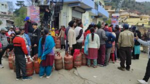 लोहाघाट। चम्पावत जिले में रसोई गैस आपूर्ति को लेकर प्रशासनिक दावे जमीनी हकीकत के सामने पूरी तरह बेअसर साबित हो रहे हैं। नगर क्षेत्र में गैस वितरण व्यवस्था बदहाल नजर आई, जहां अव्यवस्था, भारी भीड़ और कुप्रबंधन ने लोगों की मुश्किलें कई गुना बढ़ा दी हैं। हथरंगिया चौराहे पर गुरुवार को हालात सबसे ज्यादा बिगड़े नजर आए। प्रशासन जहां पर्याप्त गैस आपूर्ति का दावा कर रहा है, वहीं मौके पर सैकड़ों उपभोक्ता सुबह से ही लंबी कतारों में खड़े दिखे। भीड़ इतनी अधिक हो गई कि सड़क पर जाम की स्थिति बन गई और आवाजाही तक प्रभावित हो गई।