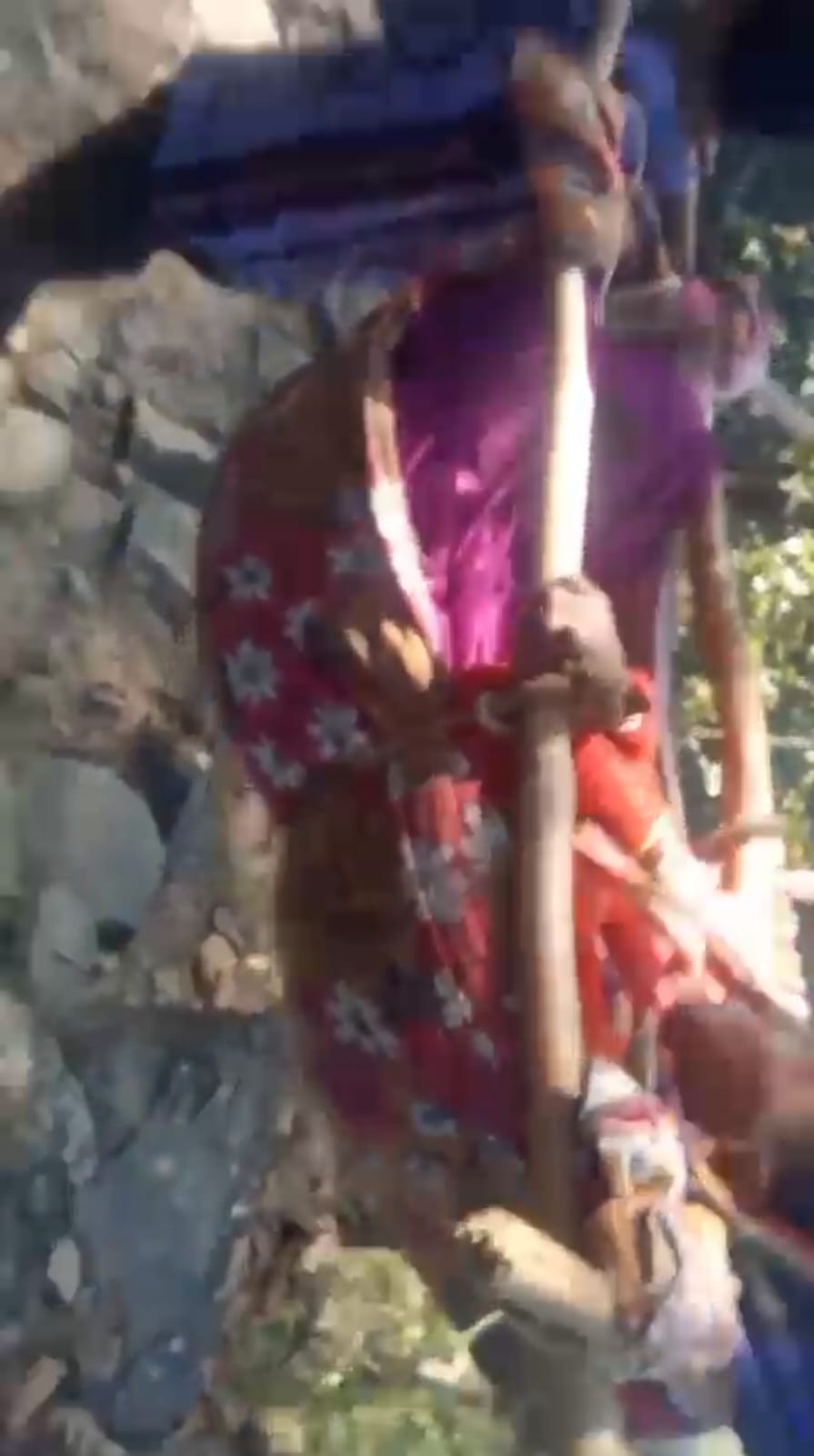 फोटो – कोटकेंद्री गांव से करीब चार किलोमीटर दूर तक डोली में घायल महिला को सड़क तक ले जाते ग्रामीण।
