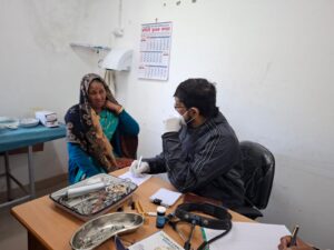 फोटो – महिला रोगी का परिक्षण करते डॉ बनर्जी।