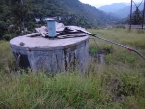 फोटो – बांस-बस्वाड़ी में हर घर जल नल योजना के तहत बने टैंक से लटकी पाइप लाइन और लीकेज की तस्वीर, जो योजना की जमीनी हकीकत बयां करती है।
