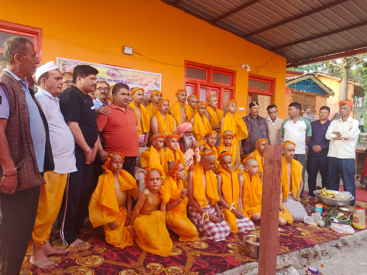 फोटो बटुकों के जनैऊ धारण करने के बाद उन्होंने आशिर्वाद देते लोग।
